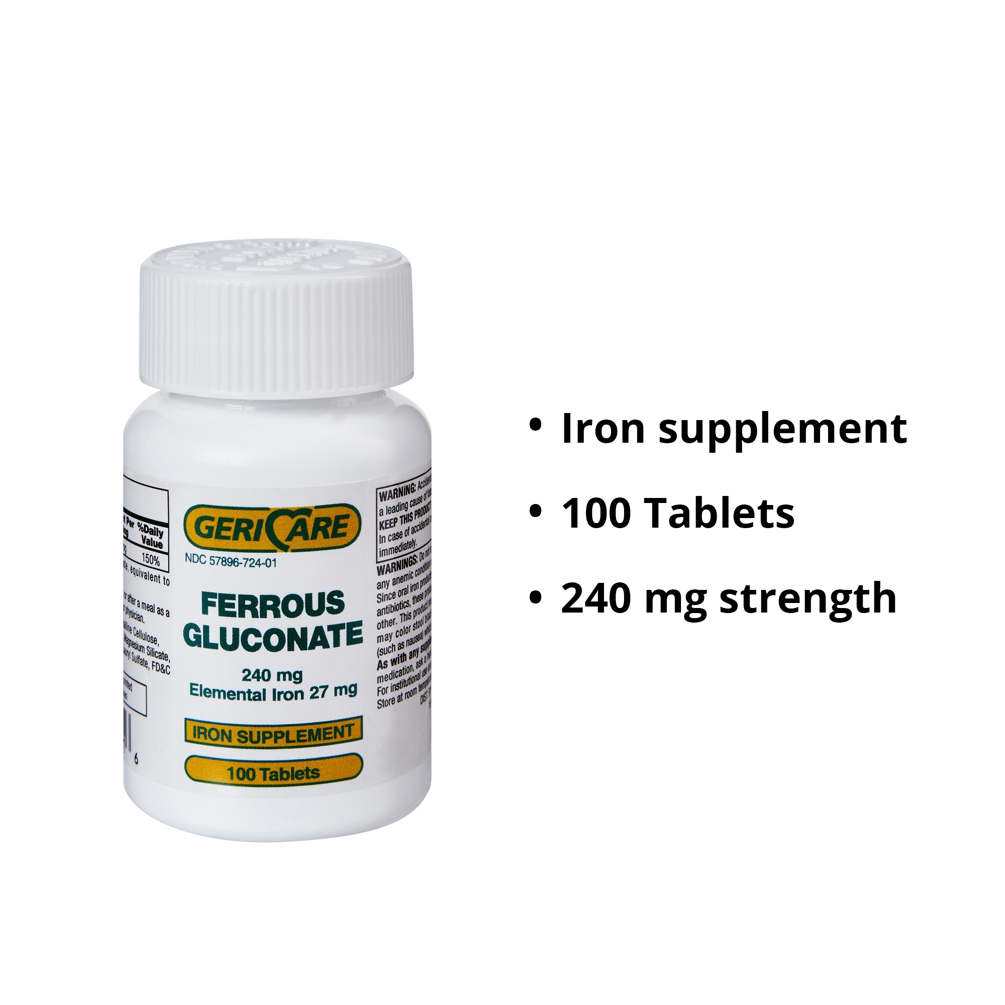 • Each tablet contains 240 mg ferrous gluconate, equivalent to approximately 27 mg of elemental iron.