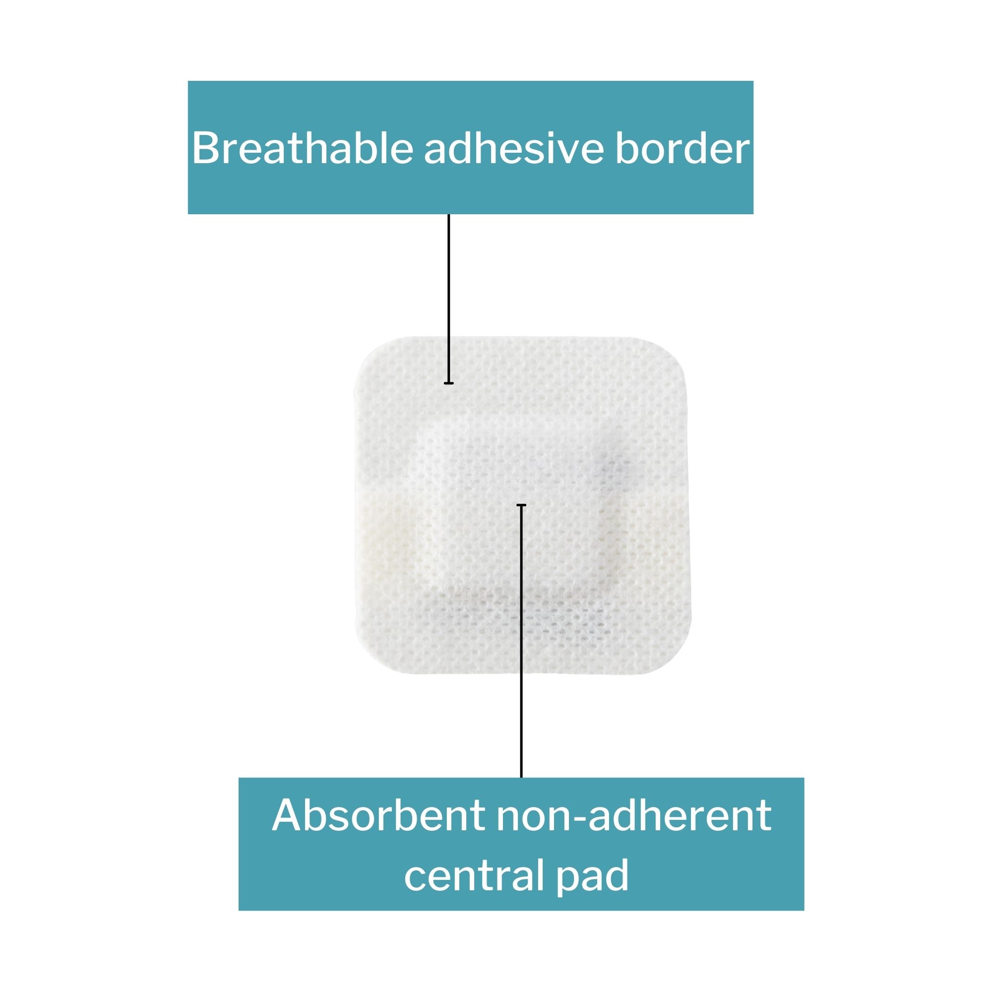 - Absorbent nonadherent central pad surrounded by a breathable adhesive border helps avoid disrupting the wound bed upon removal.