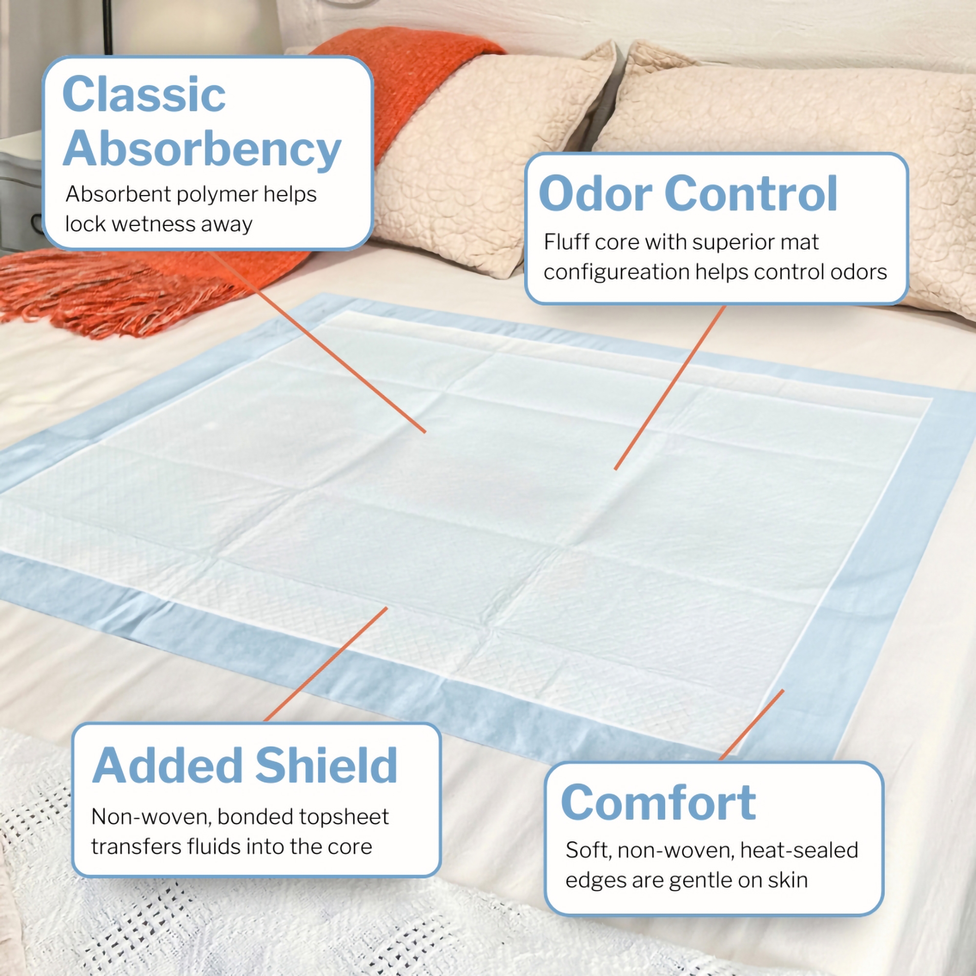 - Heat-sealed, nonwoven edges feel gentle on skin.