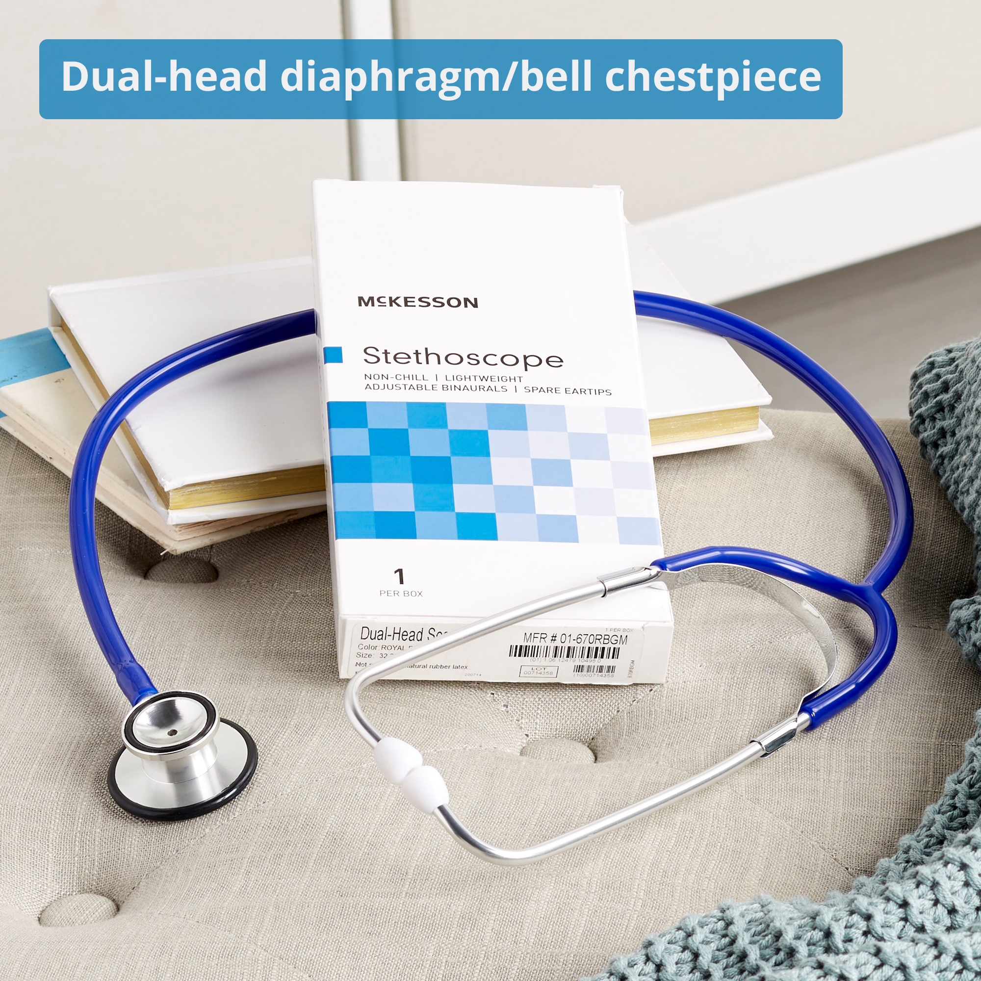 General Exam Stethoscope McKesson Royal Blue 1-Tube 22 Inch Tube Double Sided Chestpiece