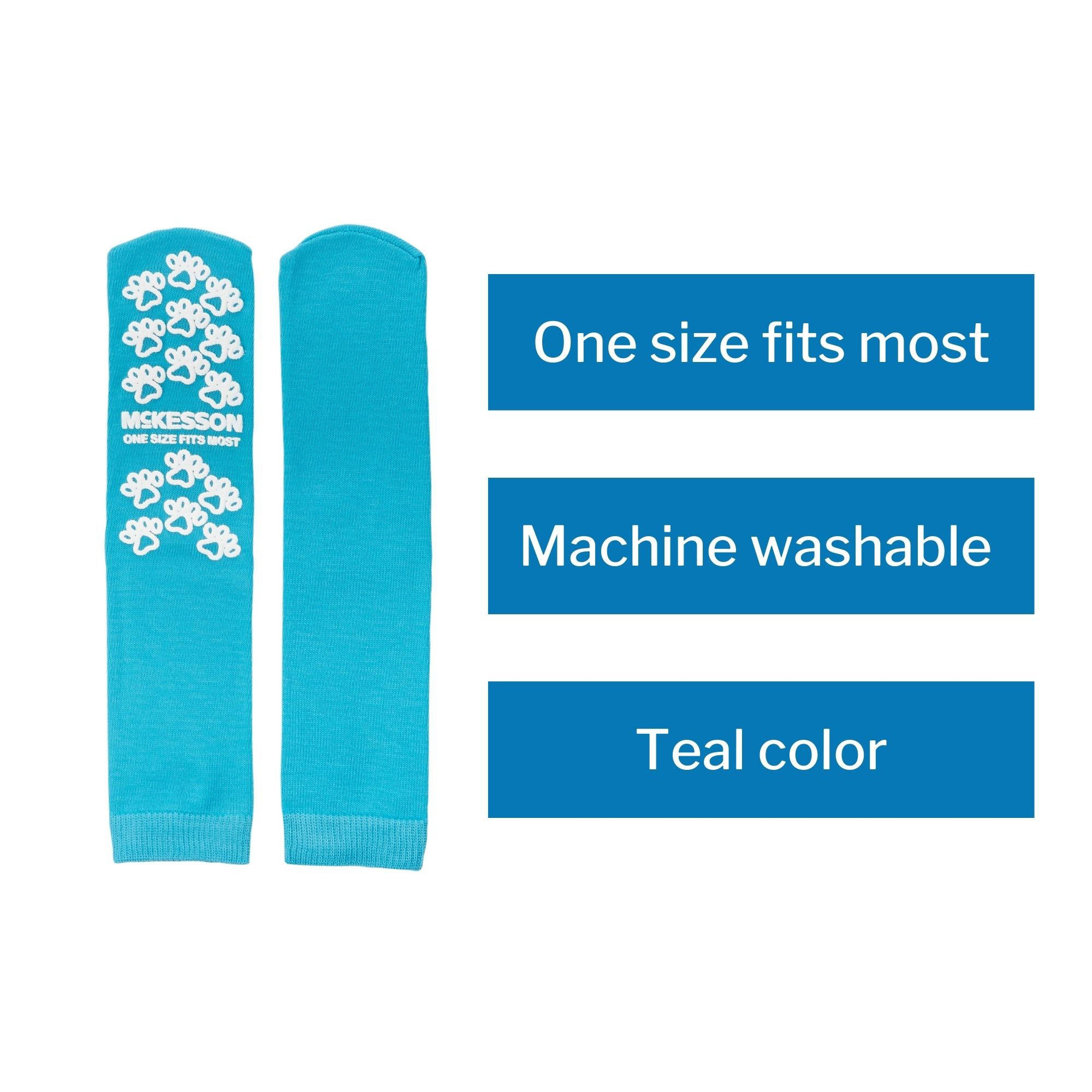 McKesson Paw Prints Slipper Socks, Aqua, One Size Fits Most