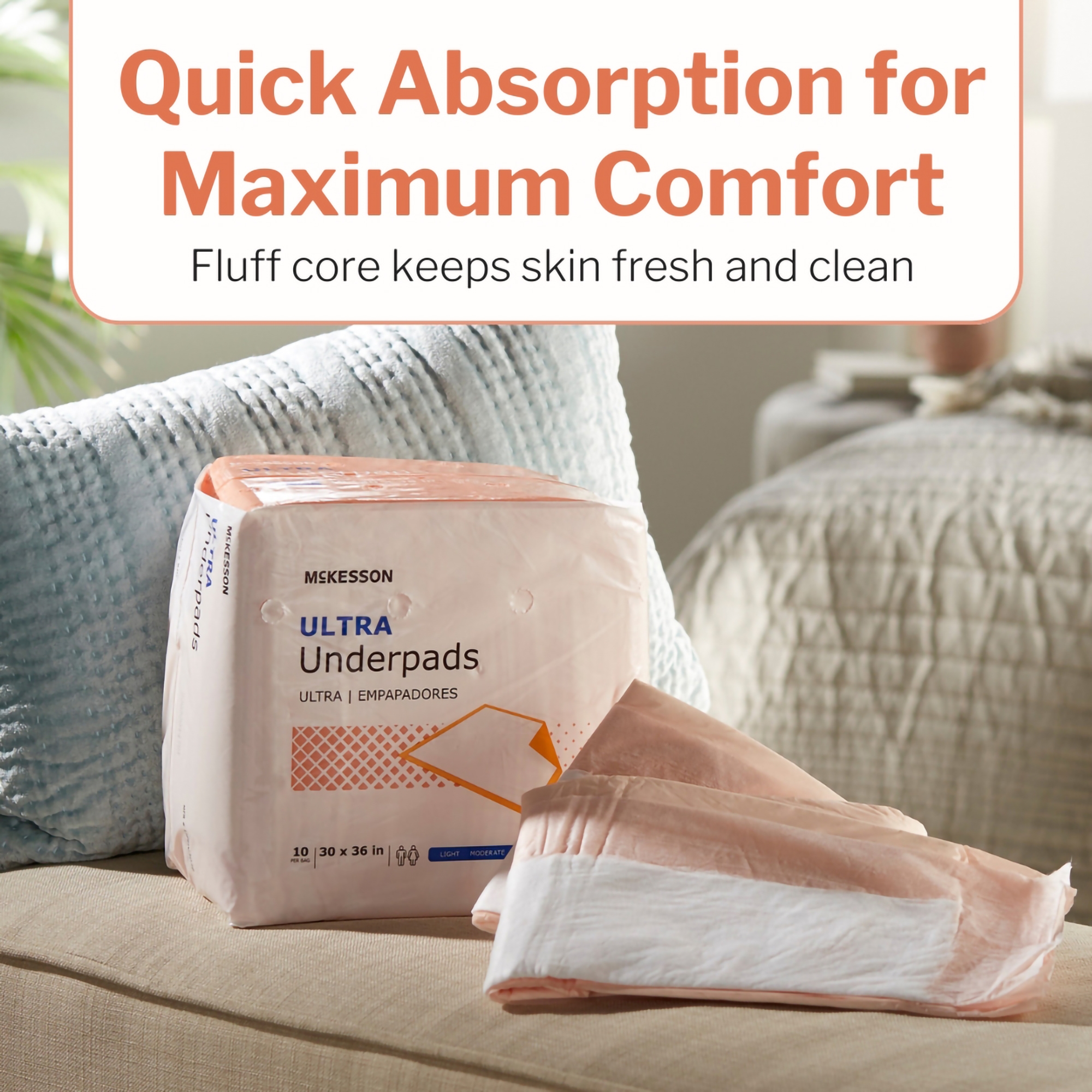 - Underpad size offers generous coverage for maximum protection.