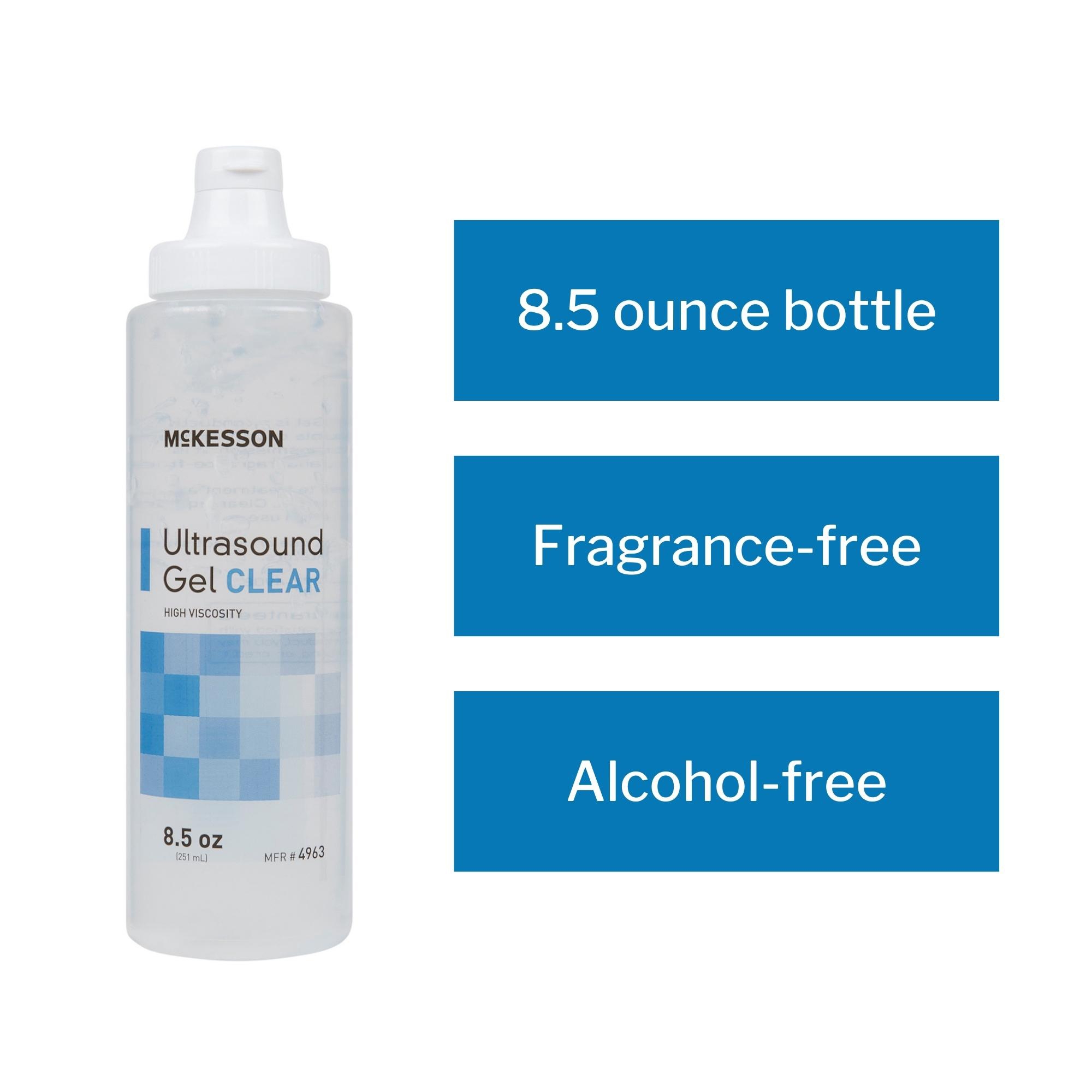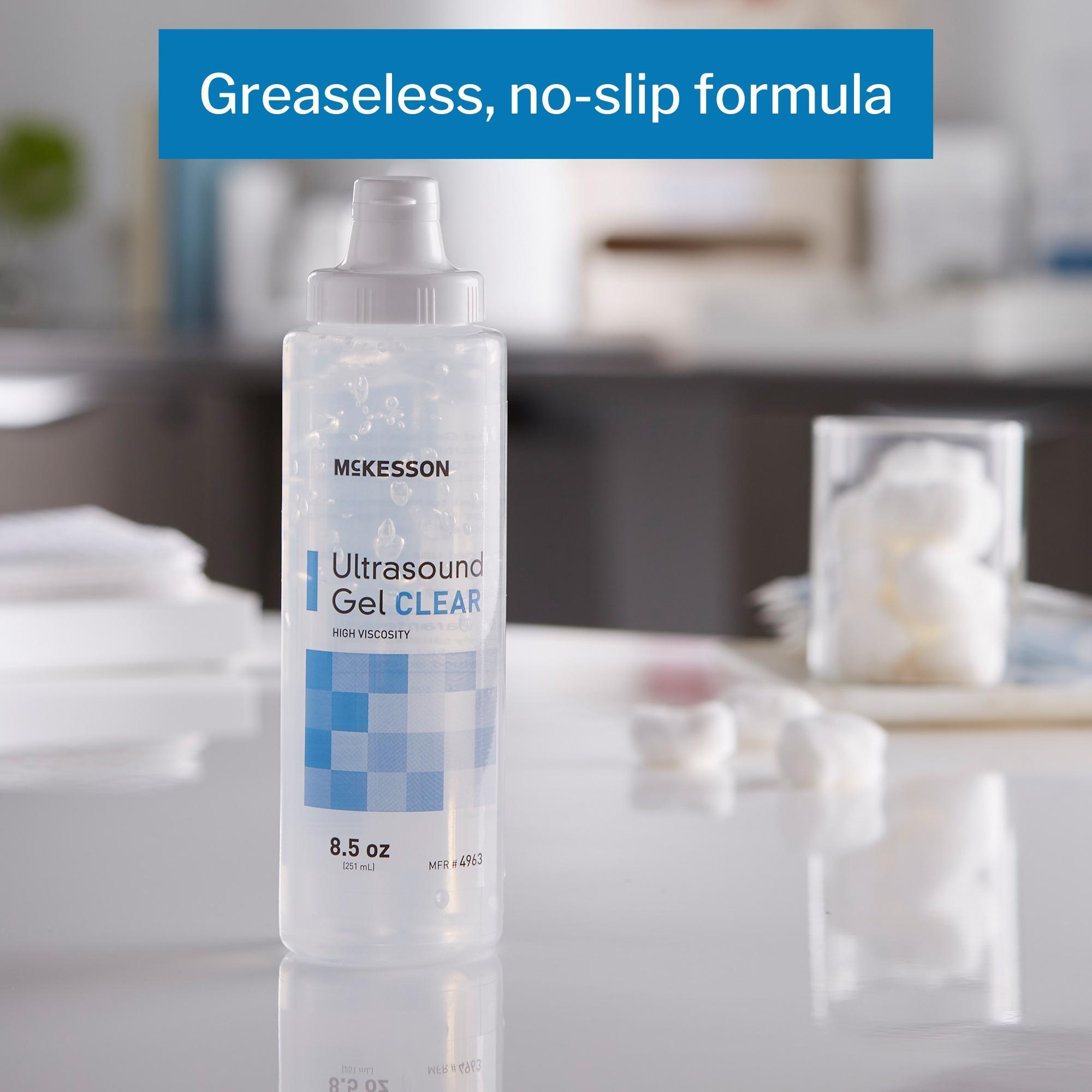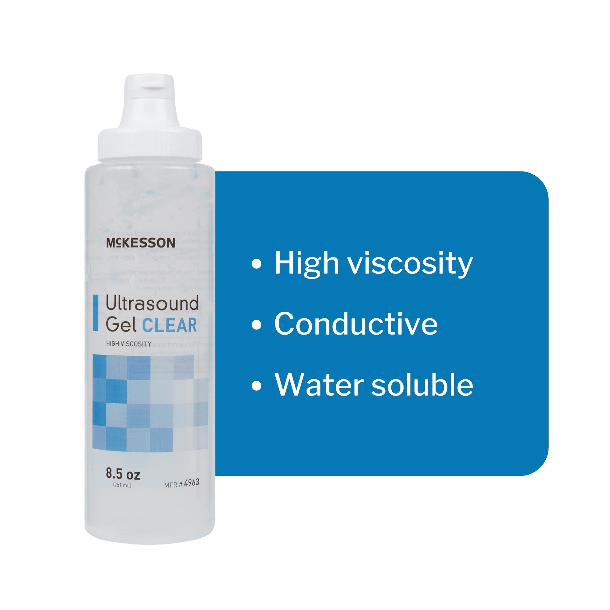 - This 250-milliliter McKesson ultrasound gel has a high viscosity to prevent running and to keep it in place after application