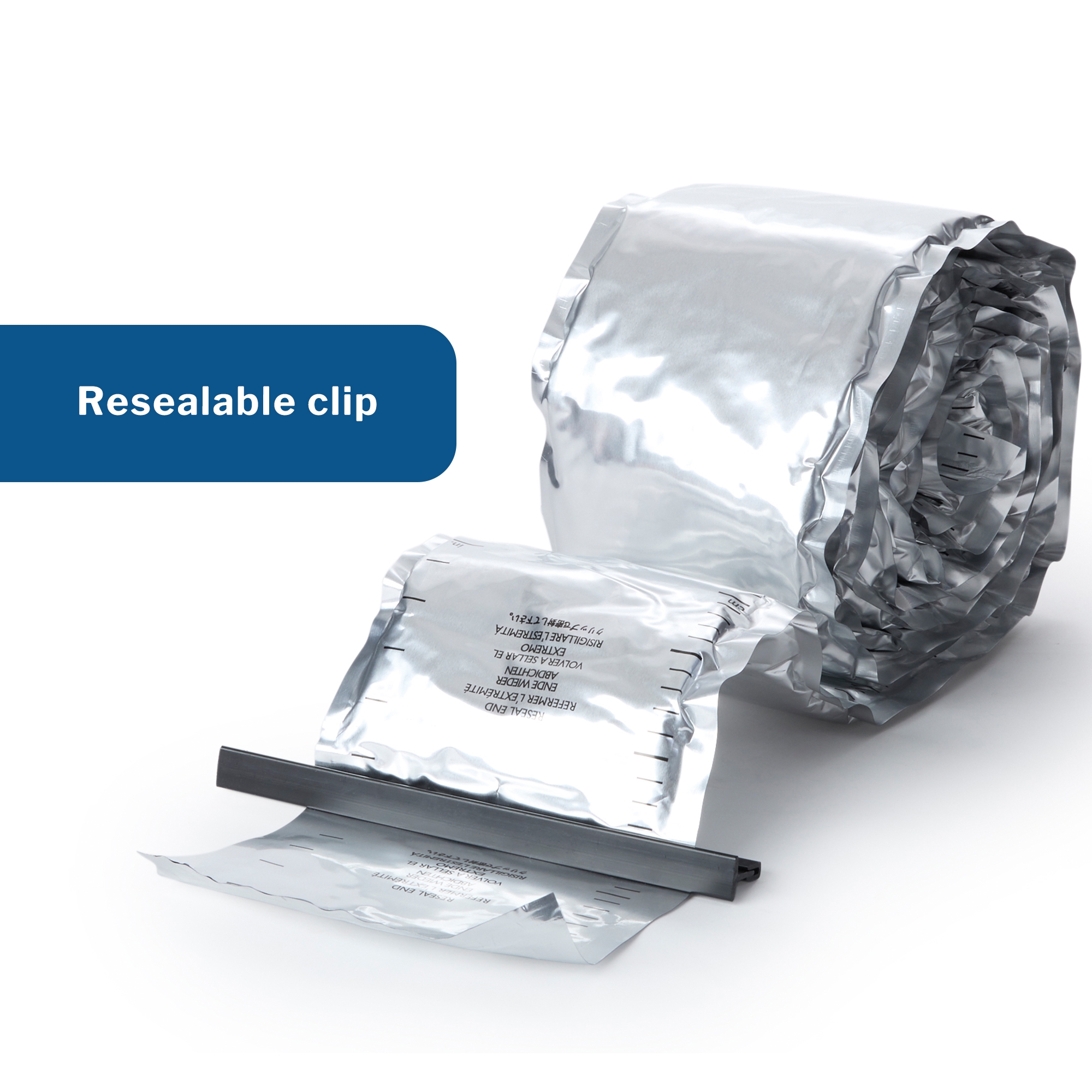 - Resealable clip helps preserve product between uses.