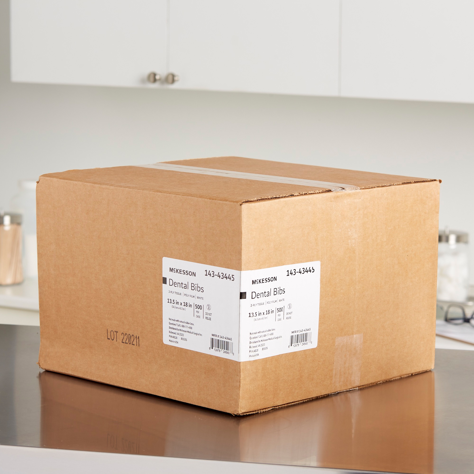 - There are 500 disposable dental bibs in a case.